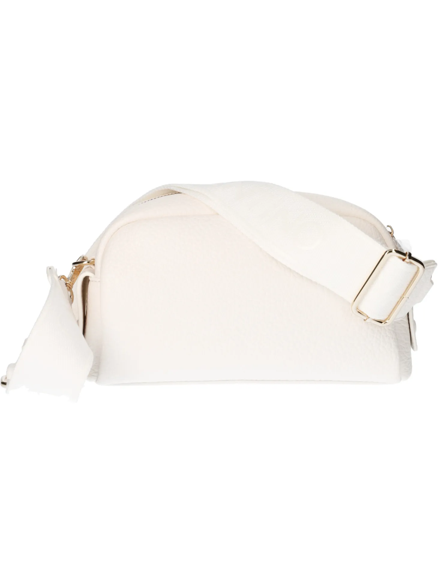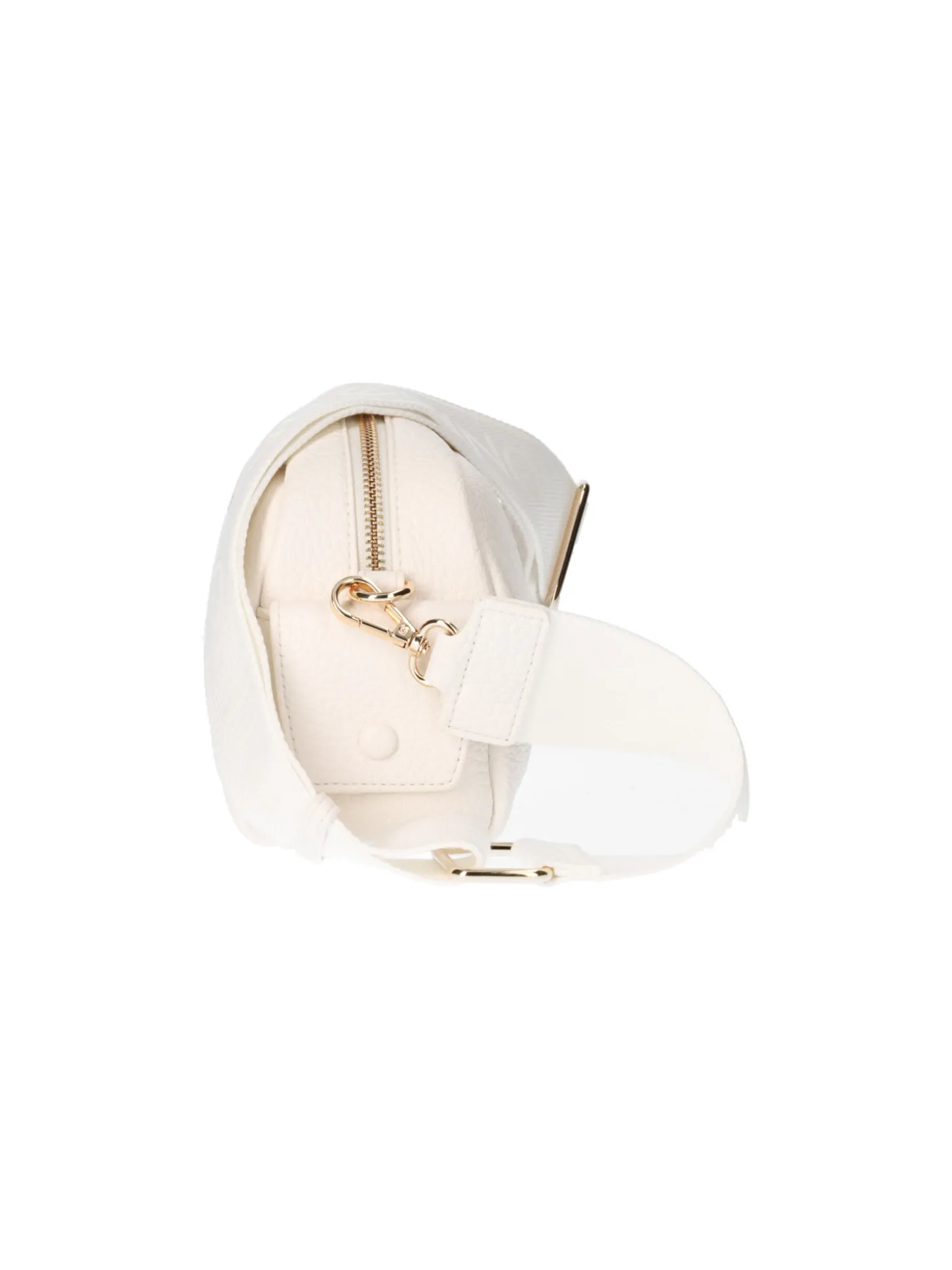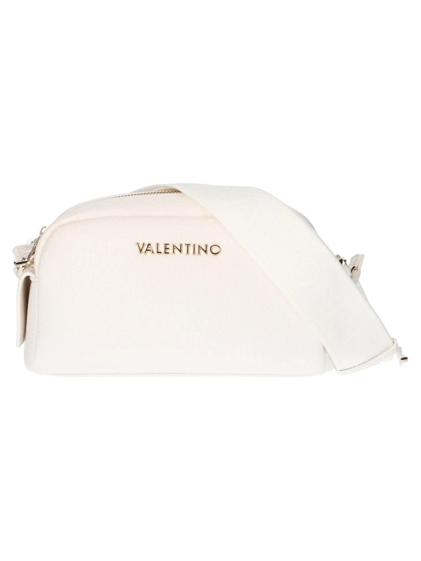 Borsa Mario Valentino da donna in ecopelle martellata bianca con tracolla regolabile in tessuto logato, zip centrale e taschini interni di servizio.