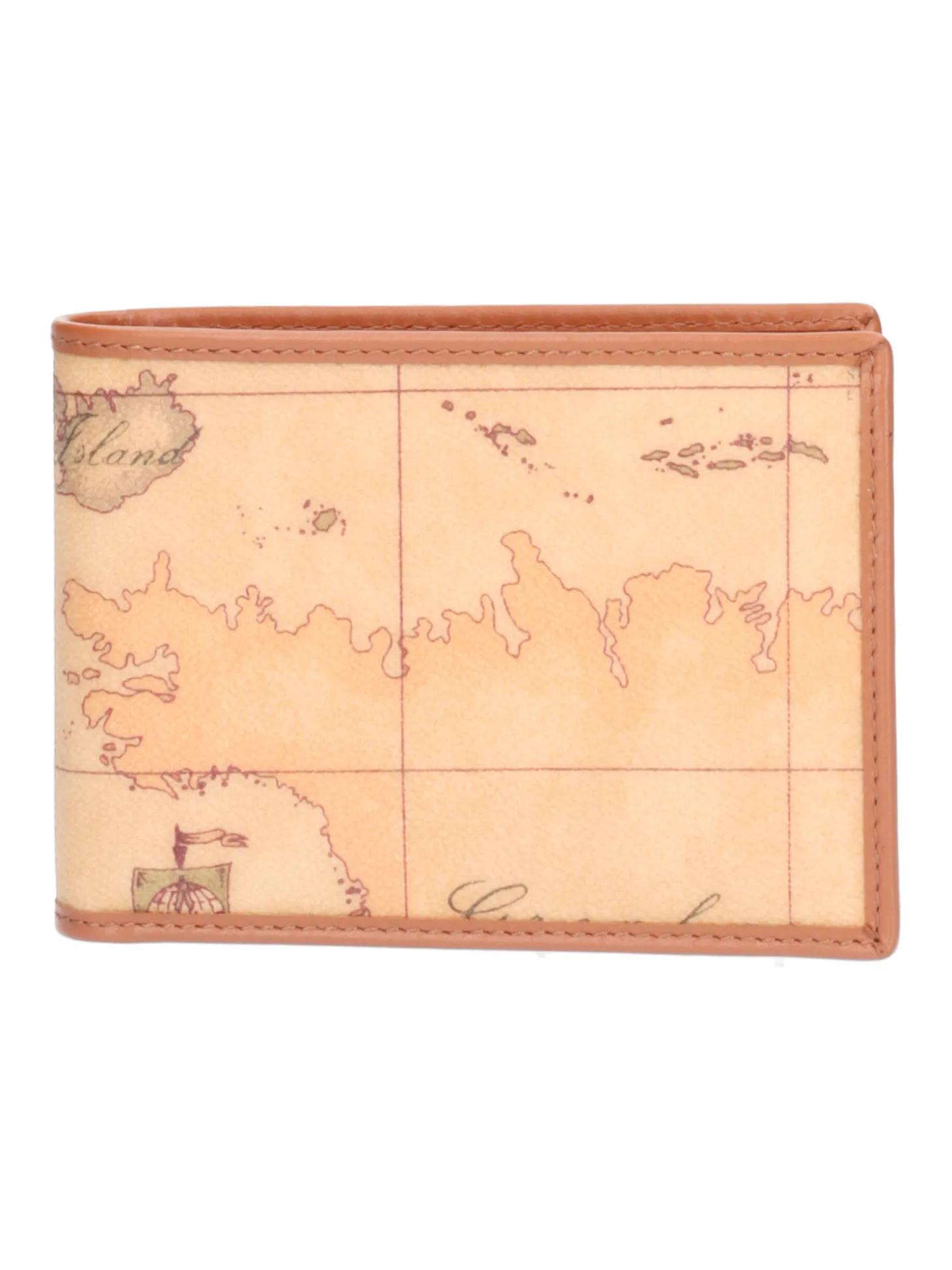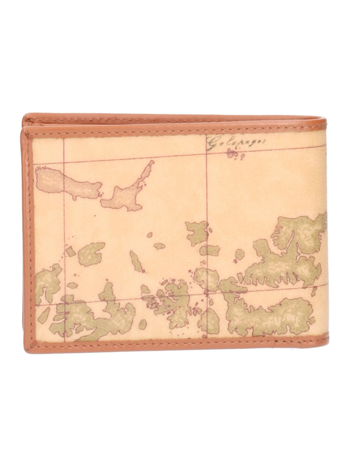 Portafoglio Alviero Martini 1a Classe da uomo in ecopelle geografica con dettagli e fodera in pelle cuoio scomparti per carte, banconote e tasca con bottone per le monete.