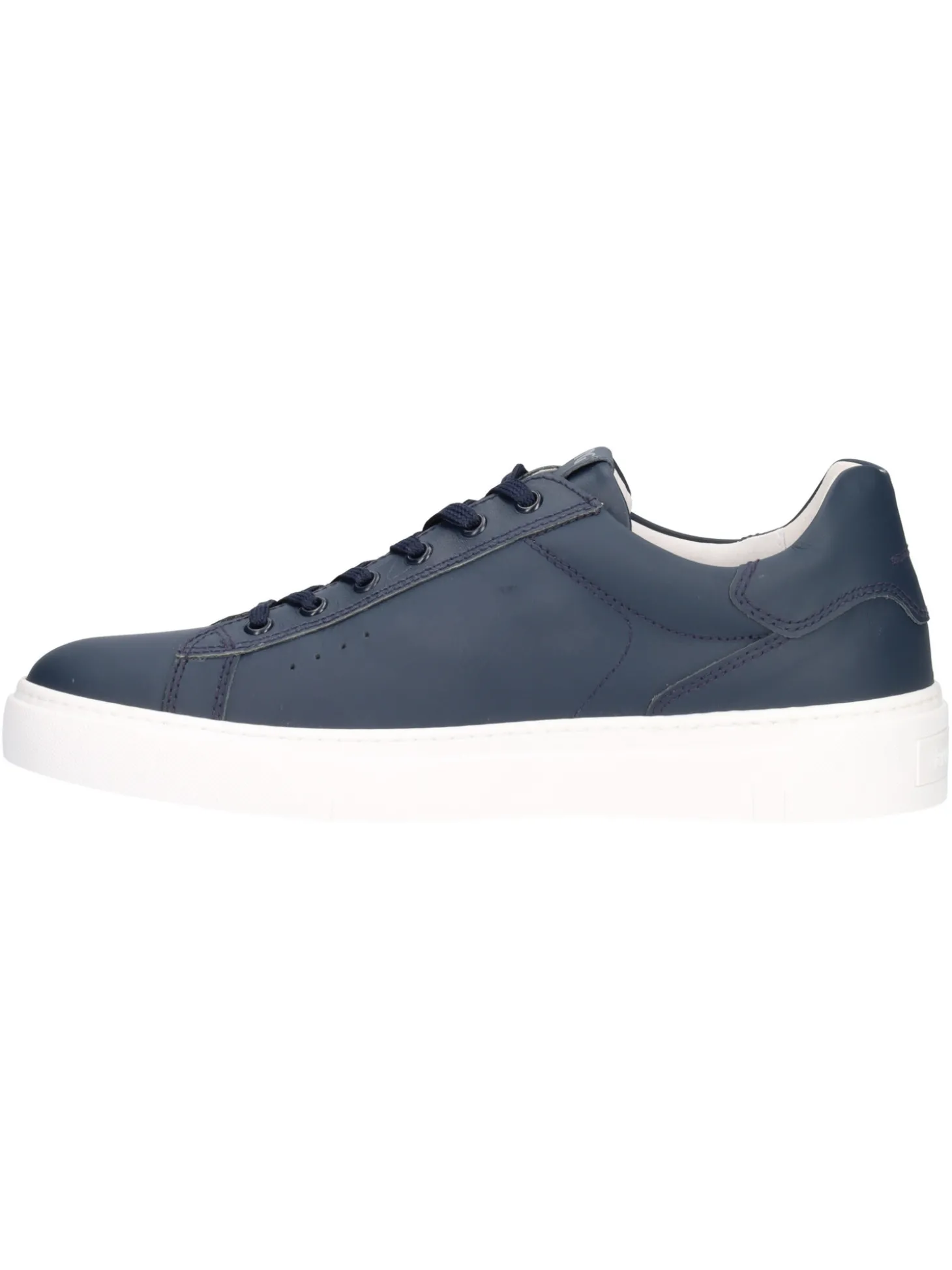 Sneaker Nero Giardini da uomo in pelle blu con fodera e sottopiede estraibile in pelle e fondo in gomma antiscivolo.