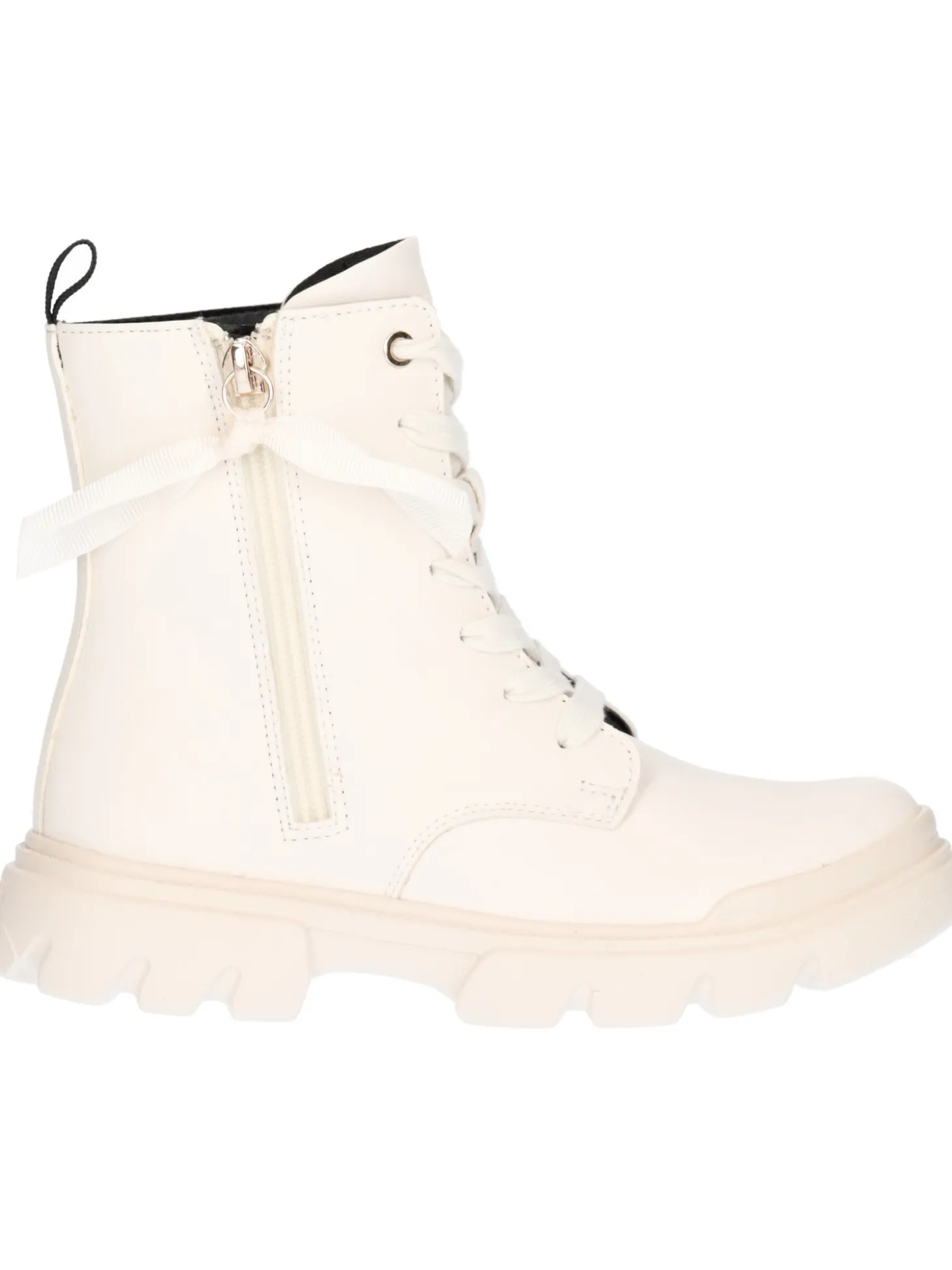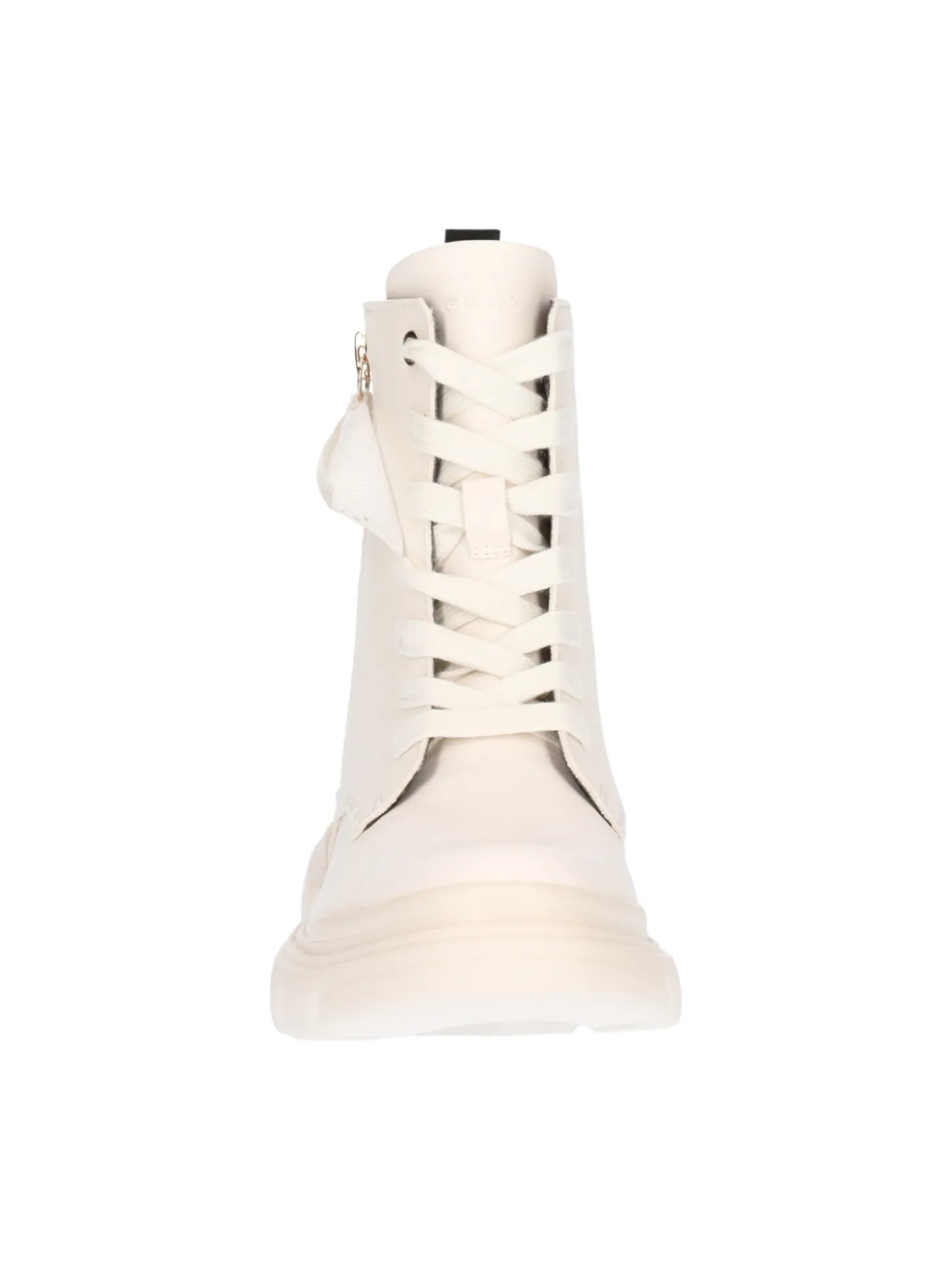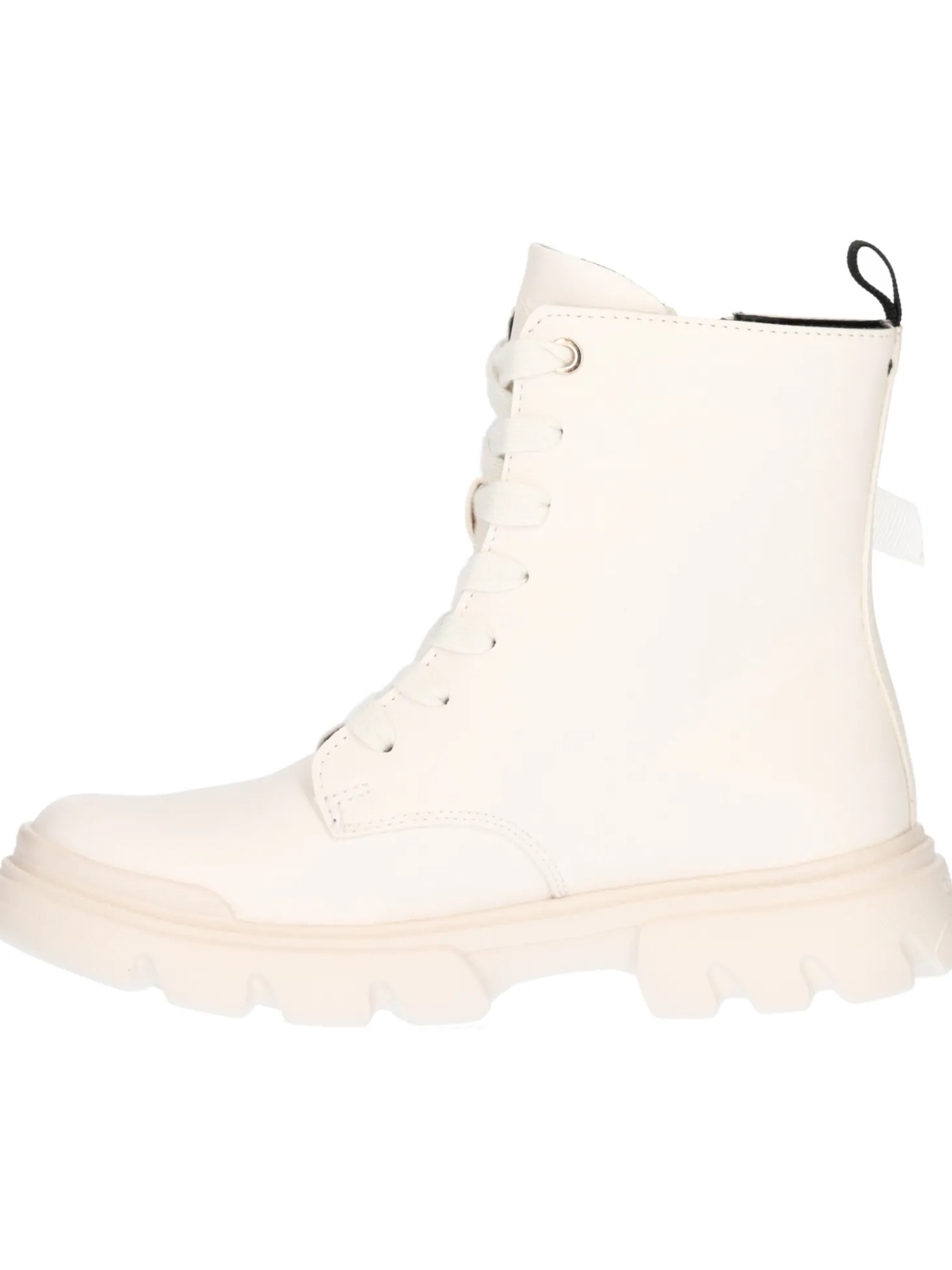 Anfibio Geox Junette da bambina in ecopelle avorio con zip laetrale, fodera e sottopiede in tessuto e fondo in gomma antiscivolo.