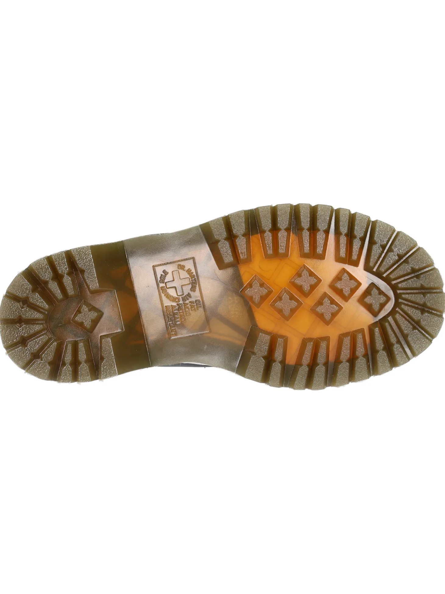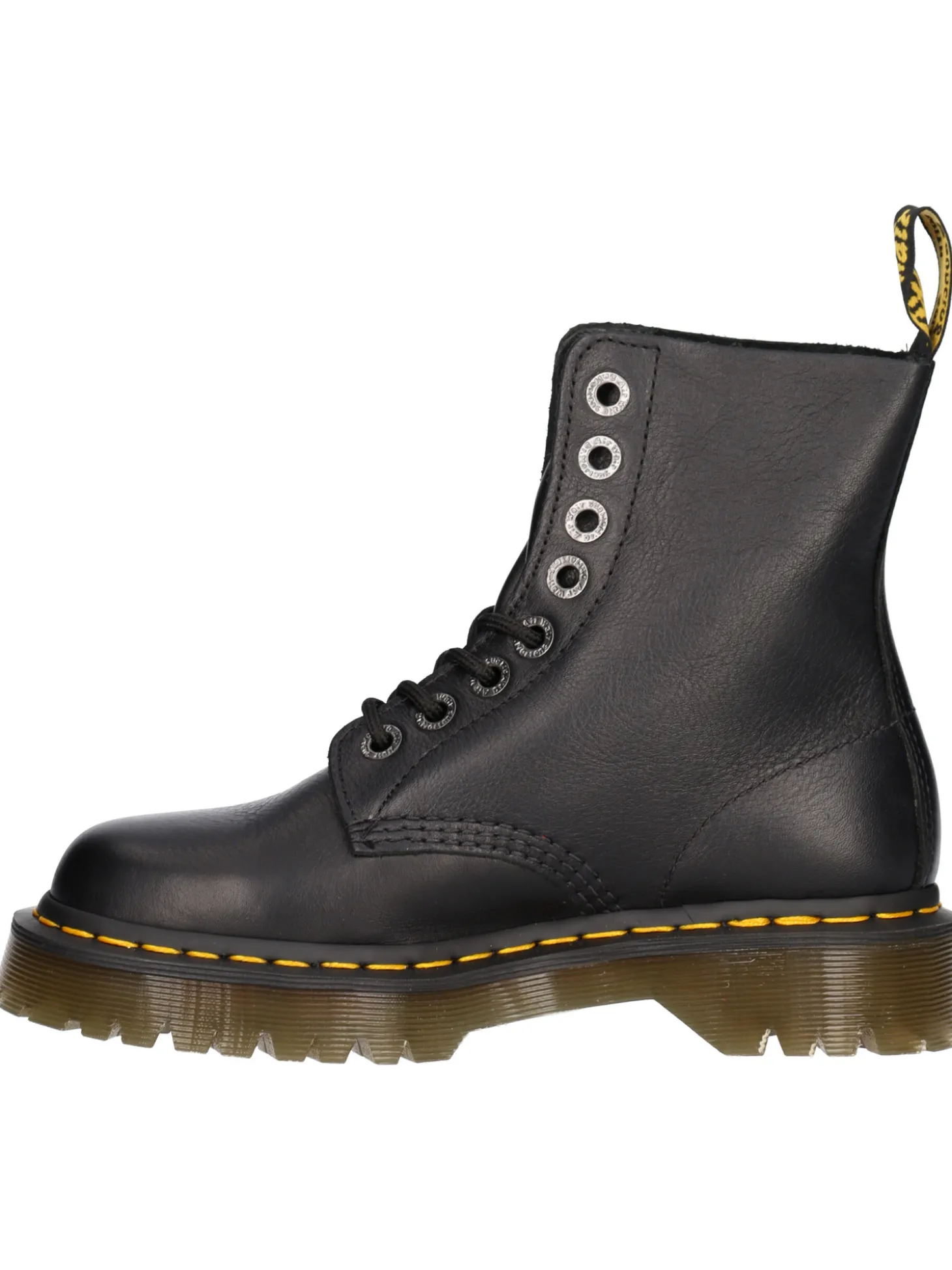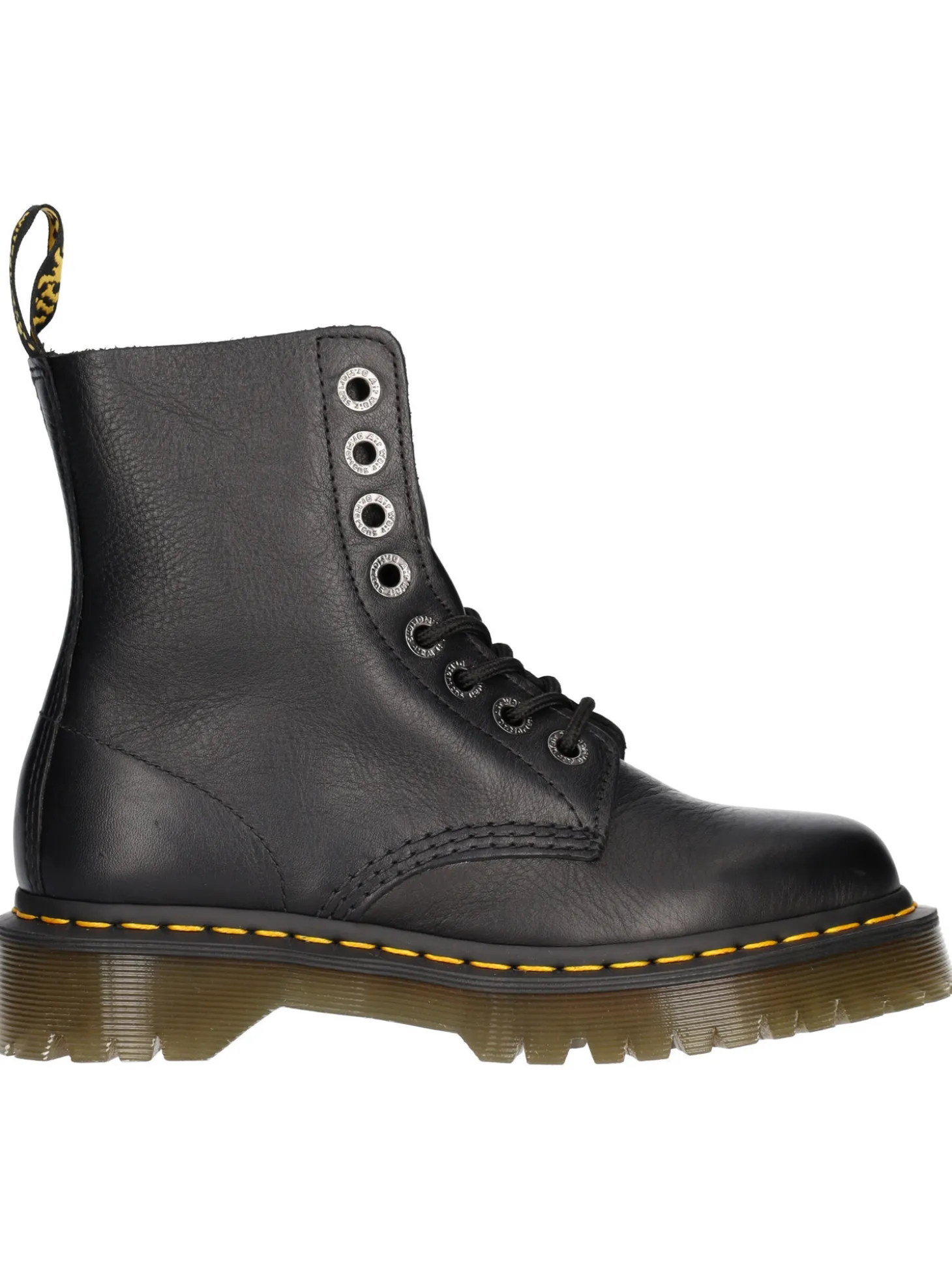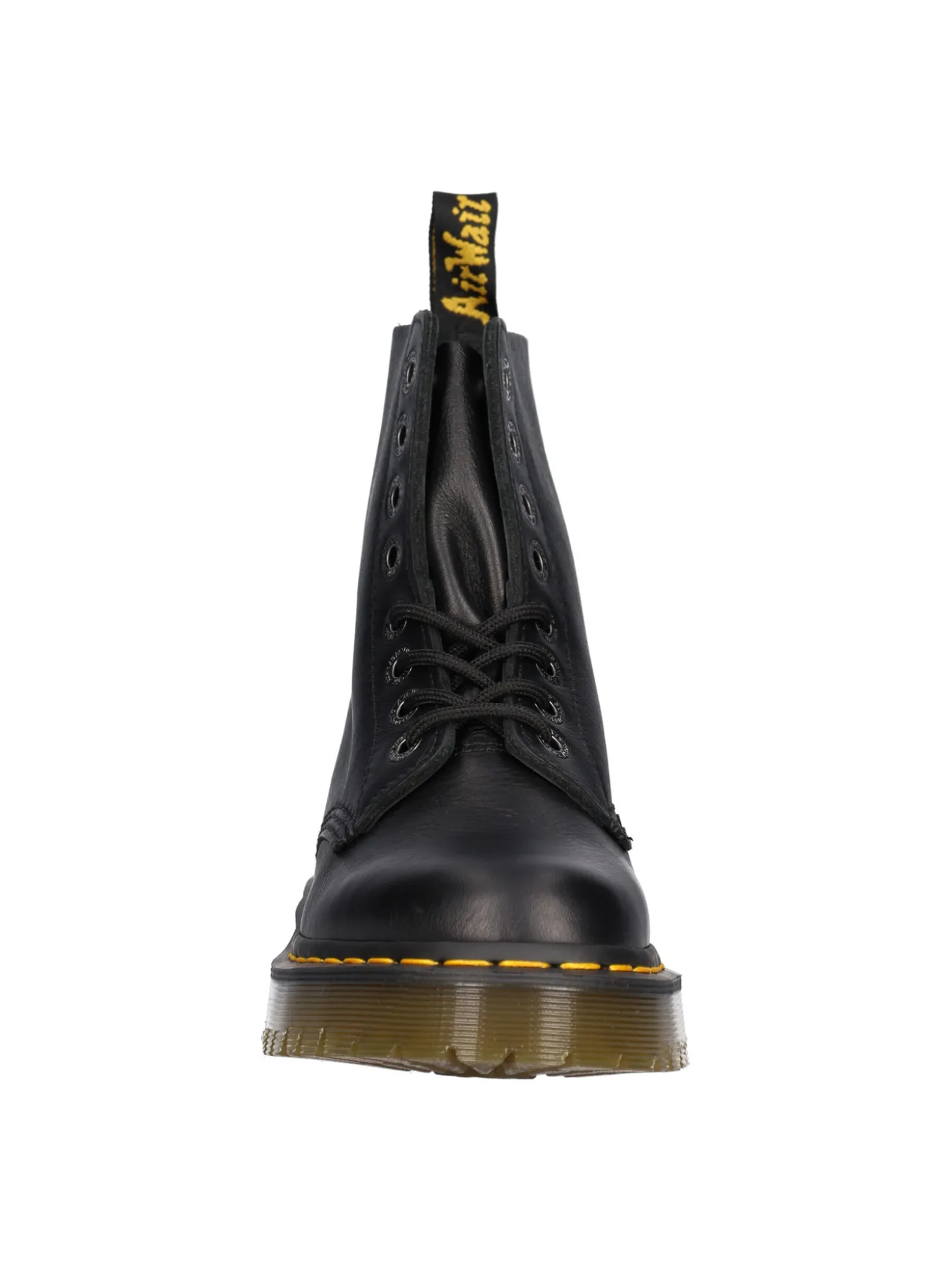 Anfibio Dr martens 1460 Pascal Bex unisex in morbida pelle nera con guardolo Goodyear. Fondo in gomma antiscivolo resistente ad olio, grasso, acido, petrolio e alcali con platform di 3,5cm.
