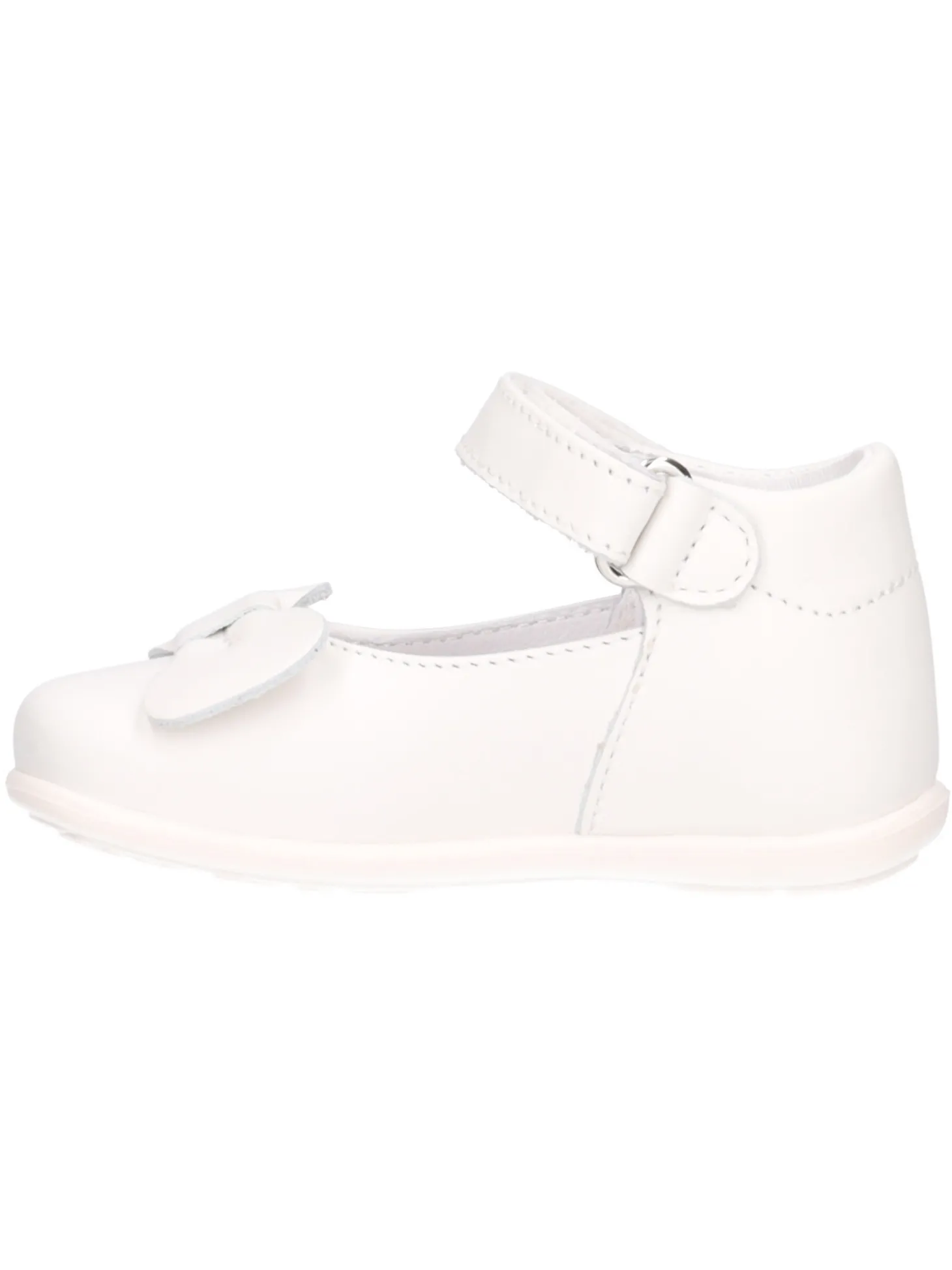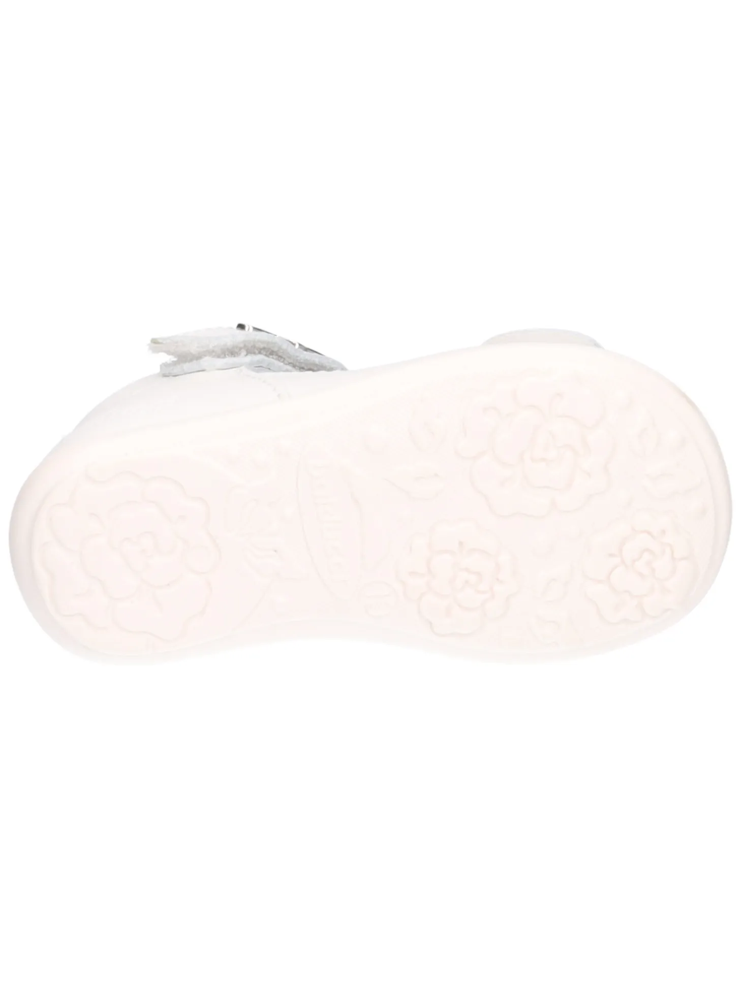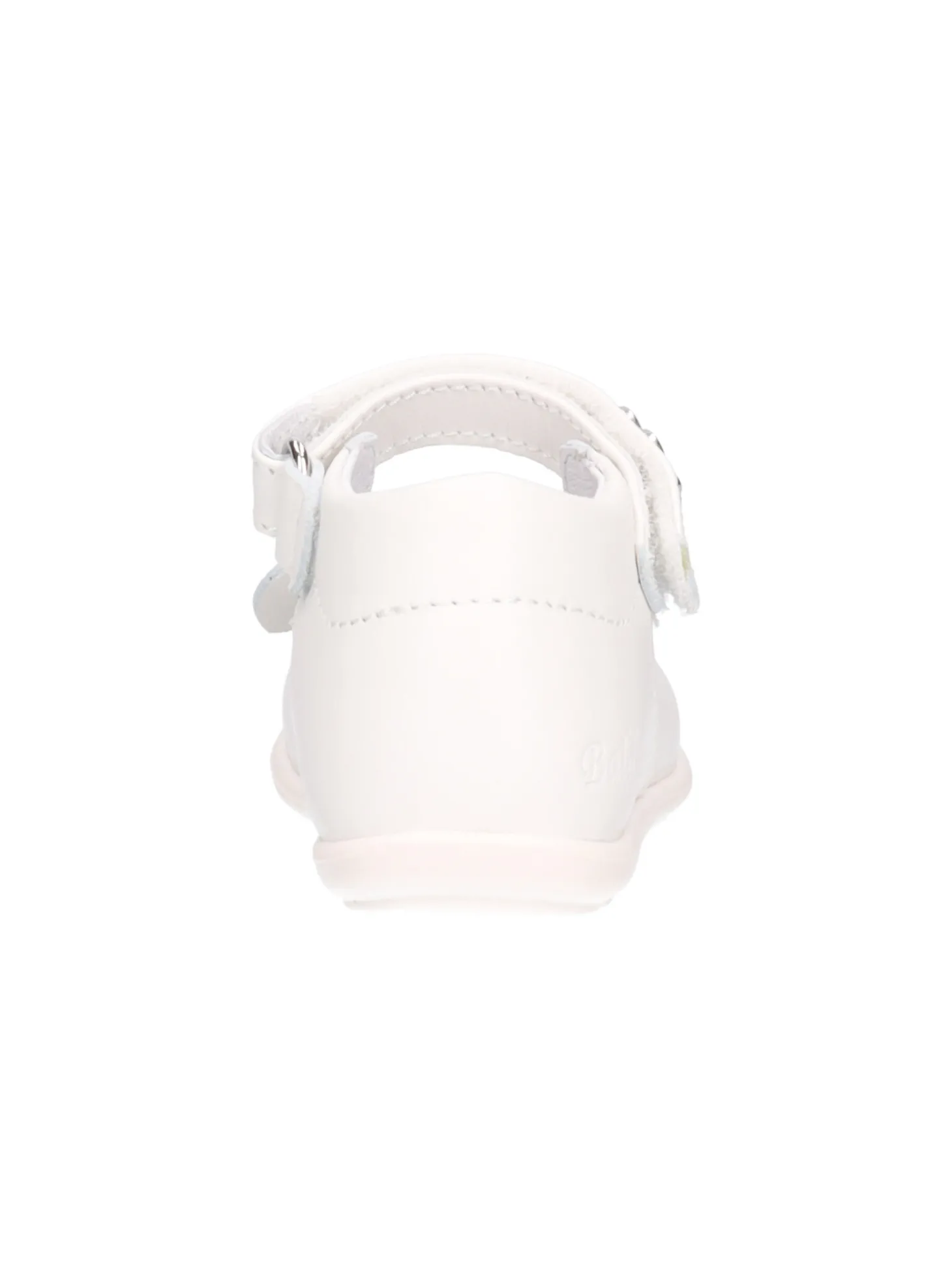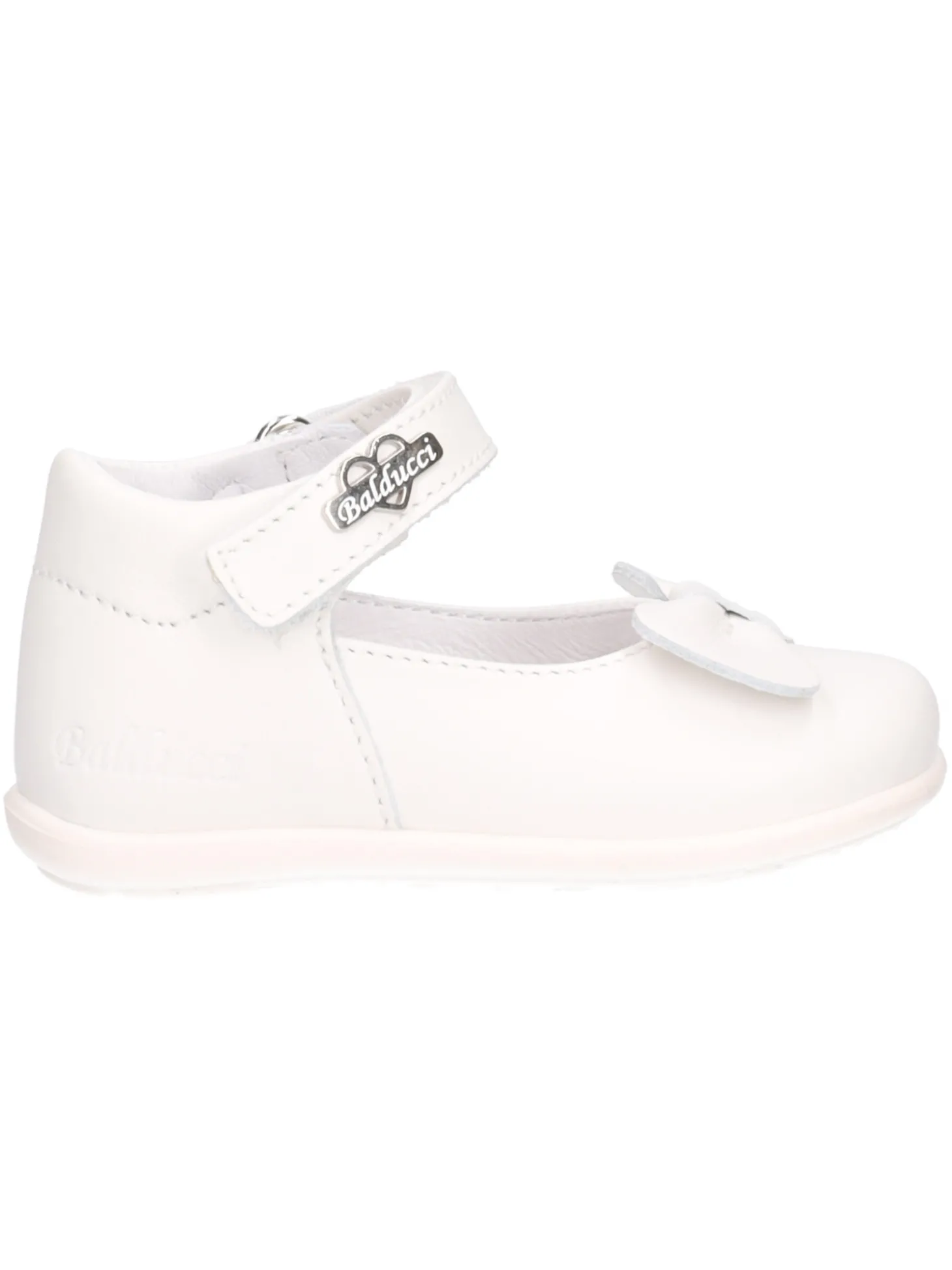 Ballerina Balducci da bambina interamente in pelle bianca con stretch regolabile e fondo in gomma.