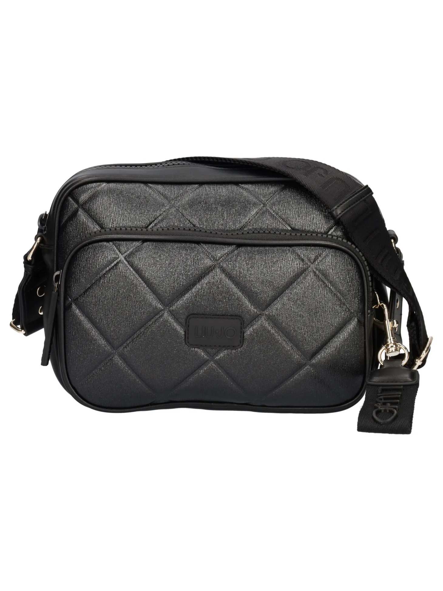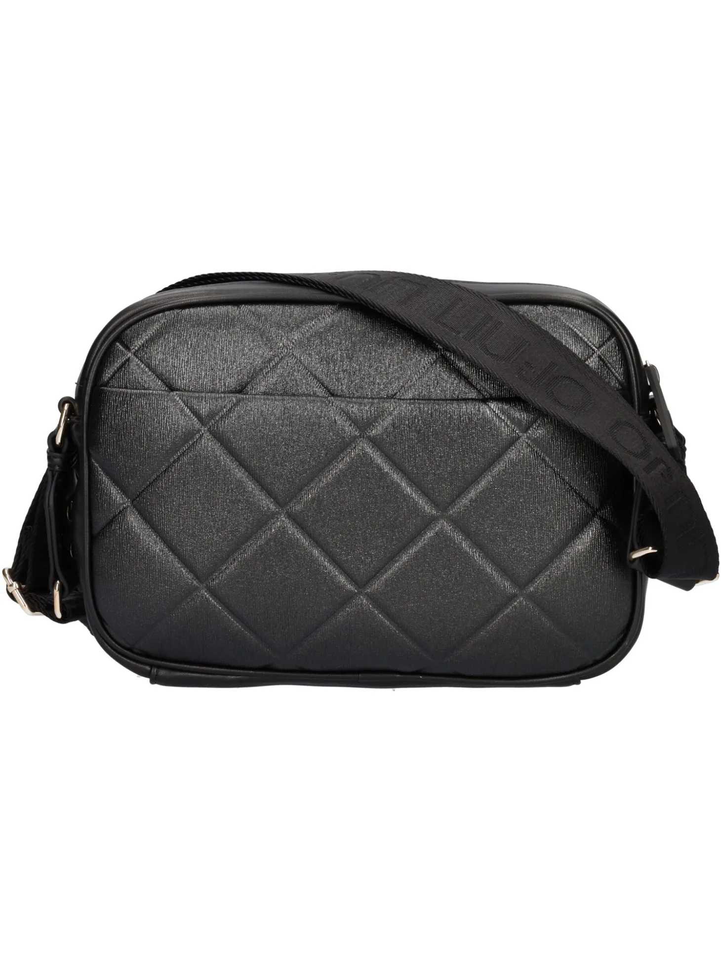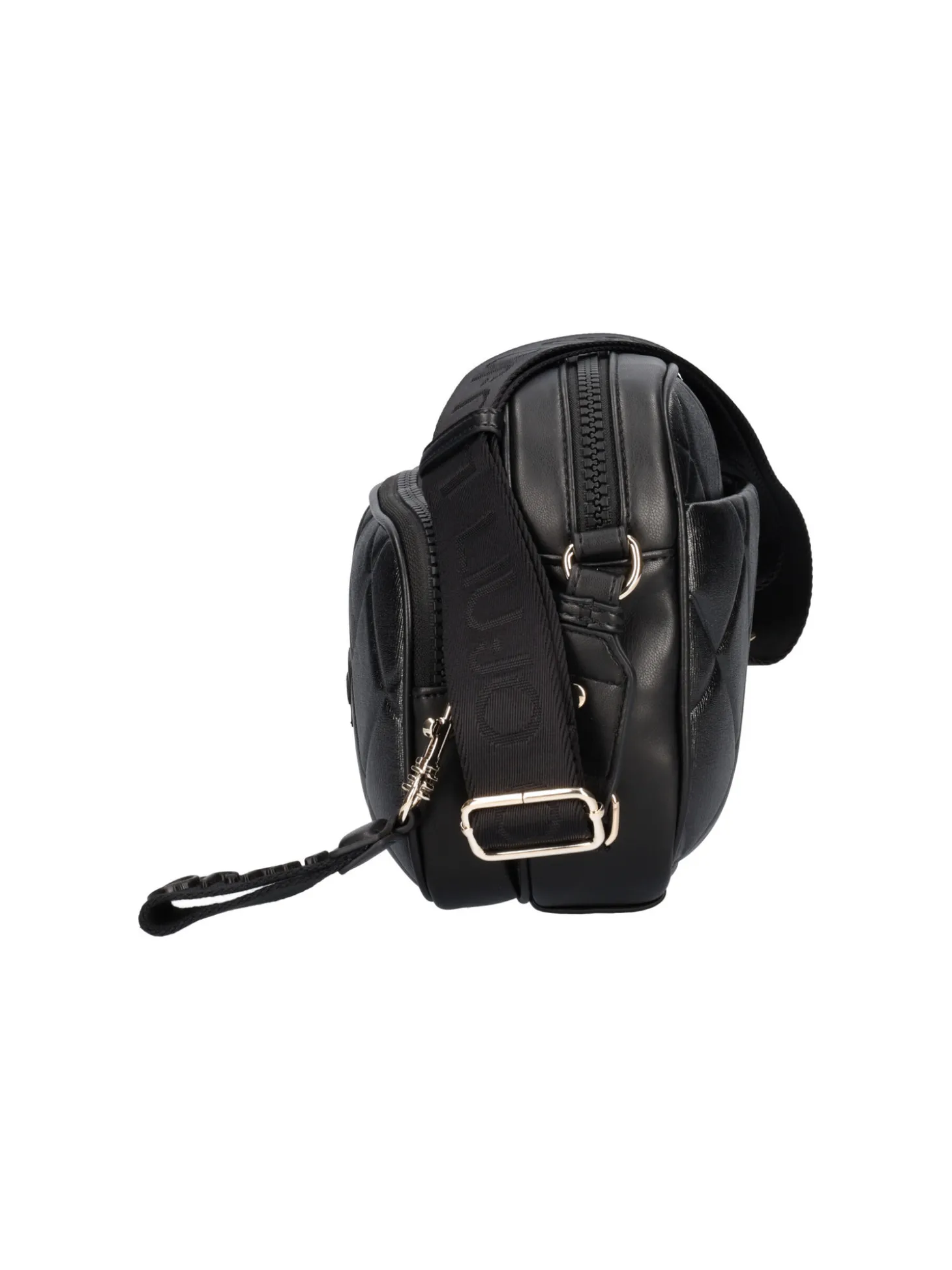 Borsa Liu Jo Sport da donna in ecopelle laminata nera con tracolla regolabile in tessuto logato, zip centrale, tasca esterna e taschini interni di servizio.
