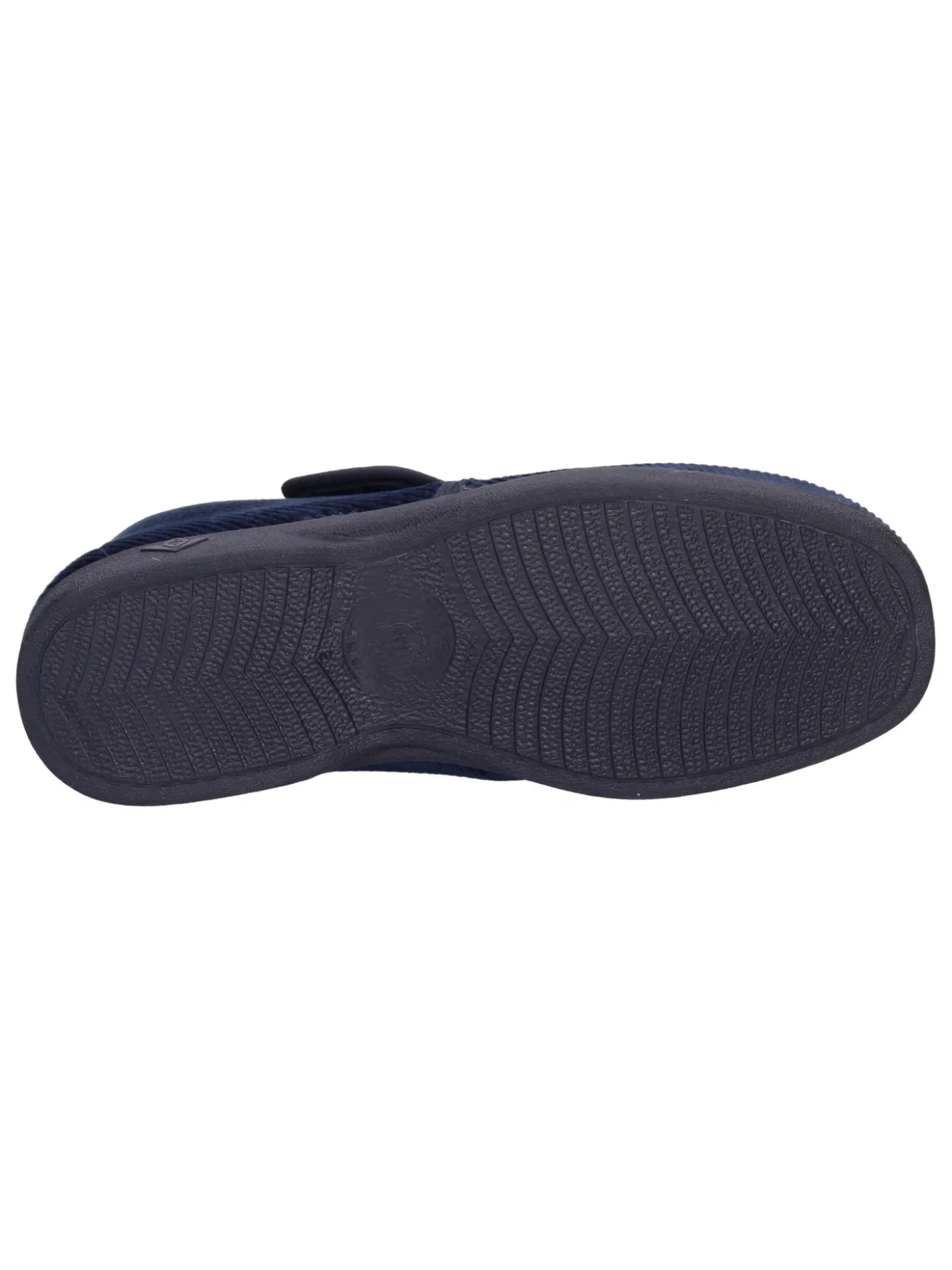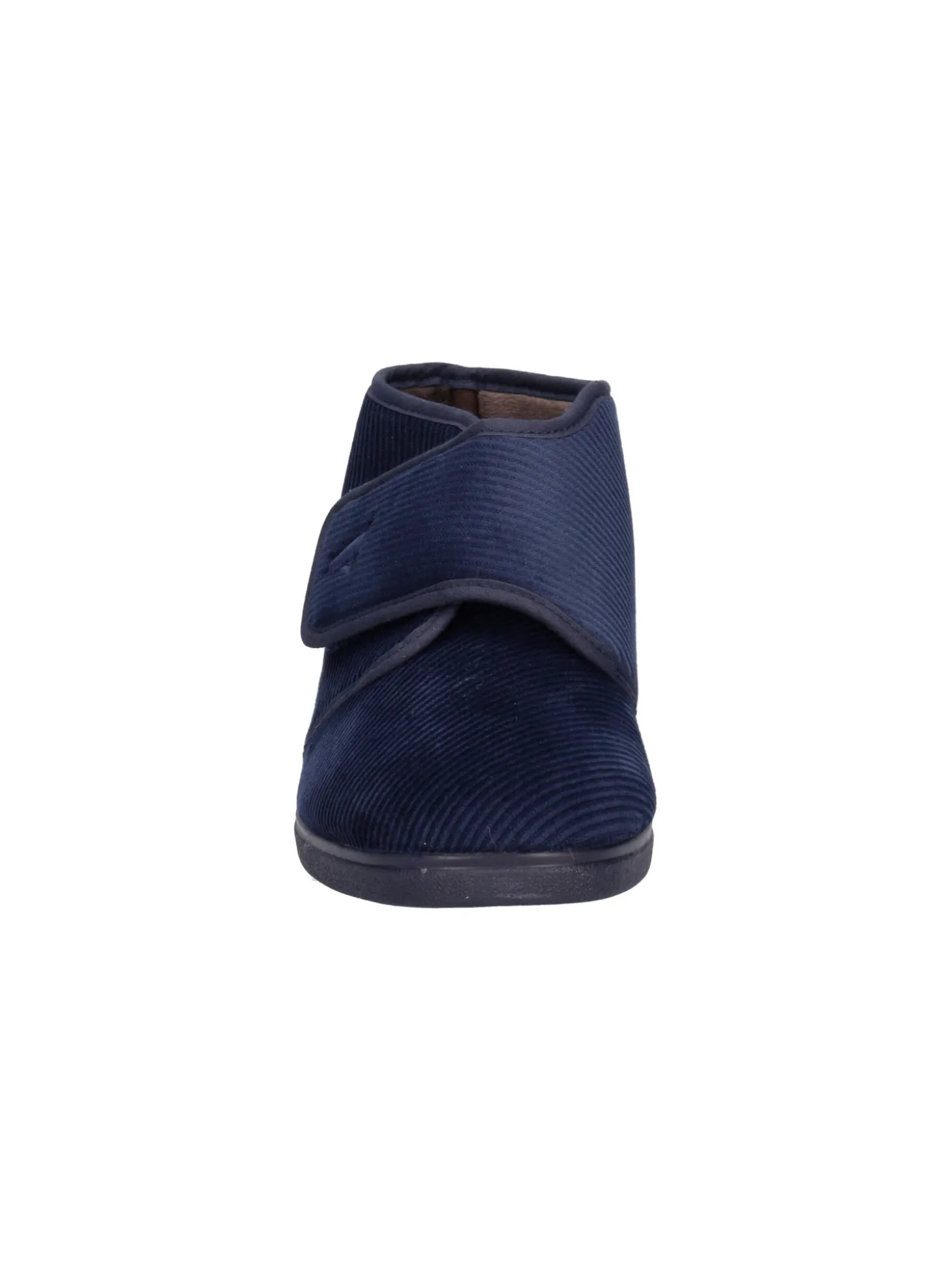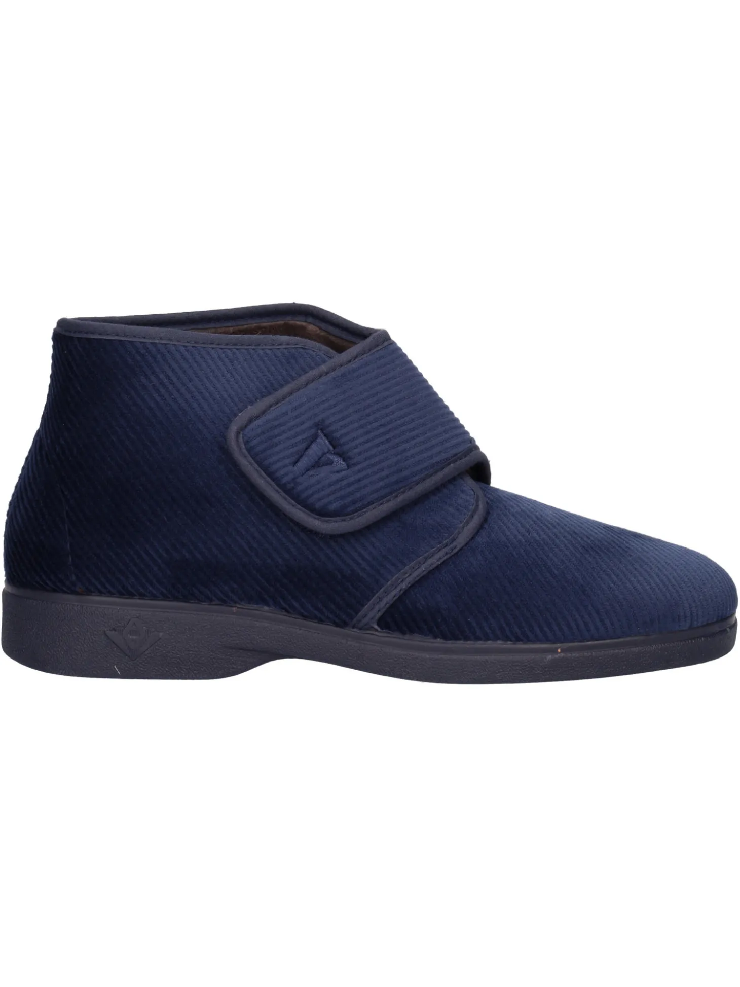 Ciabatta chiusa Valleverde da uomo in velluto blu con fascia regolabile, sottopiede e fodera in pile e fondo in gomma con tacco di 3cm.