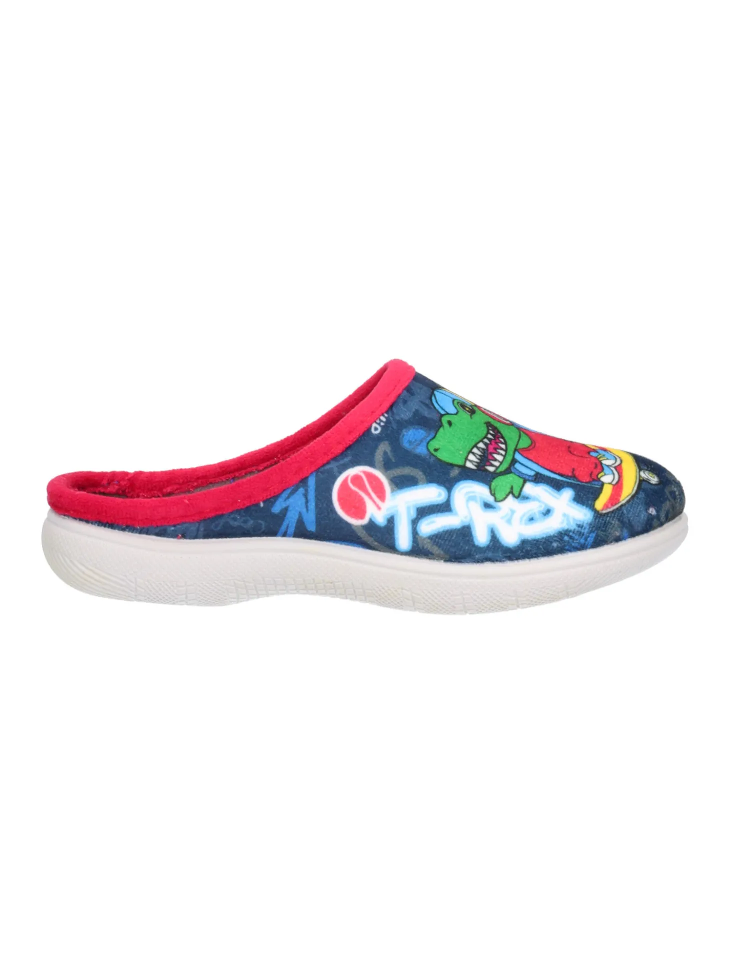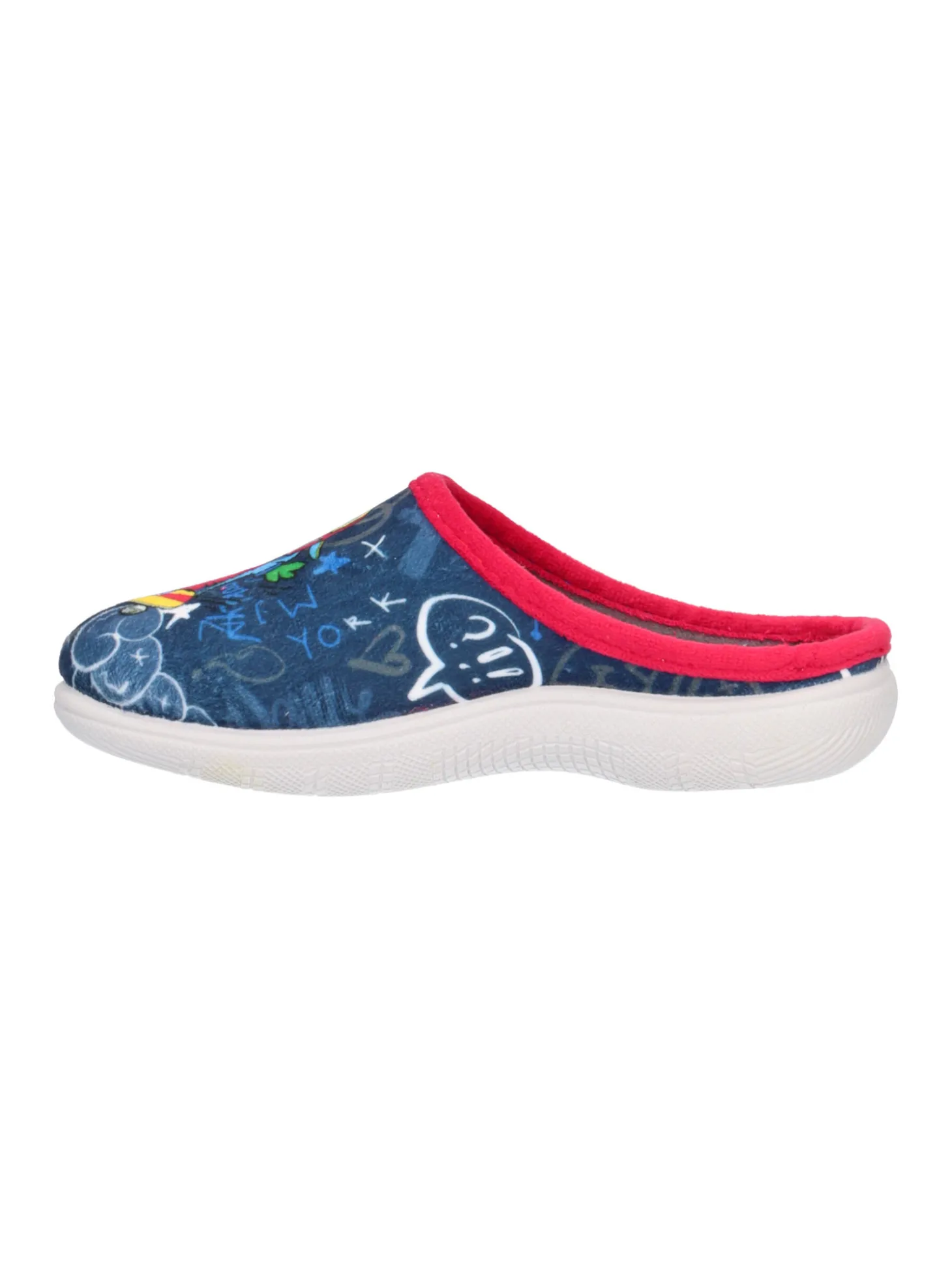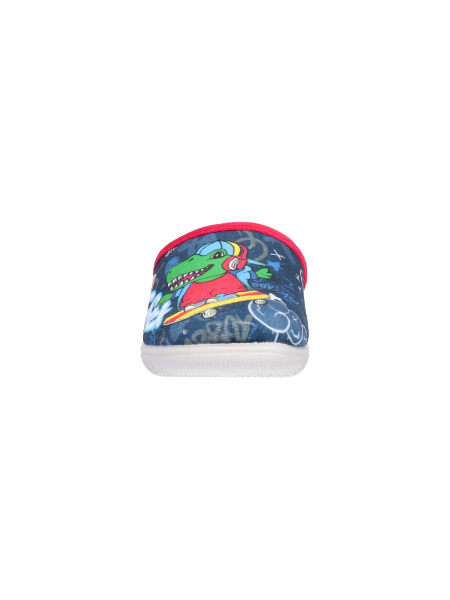 Ciabatta Inblu da bambino in velluto blu con fodera in tessuto e fondo in gomma.