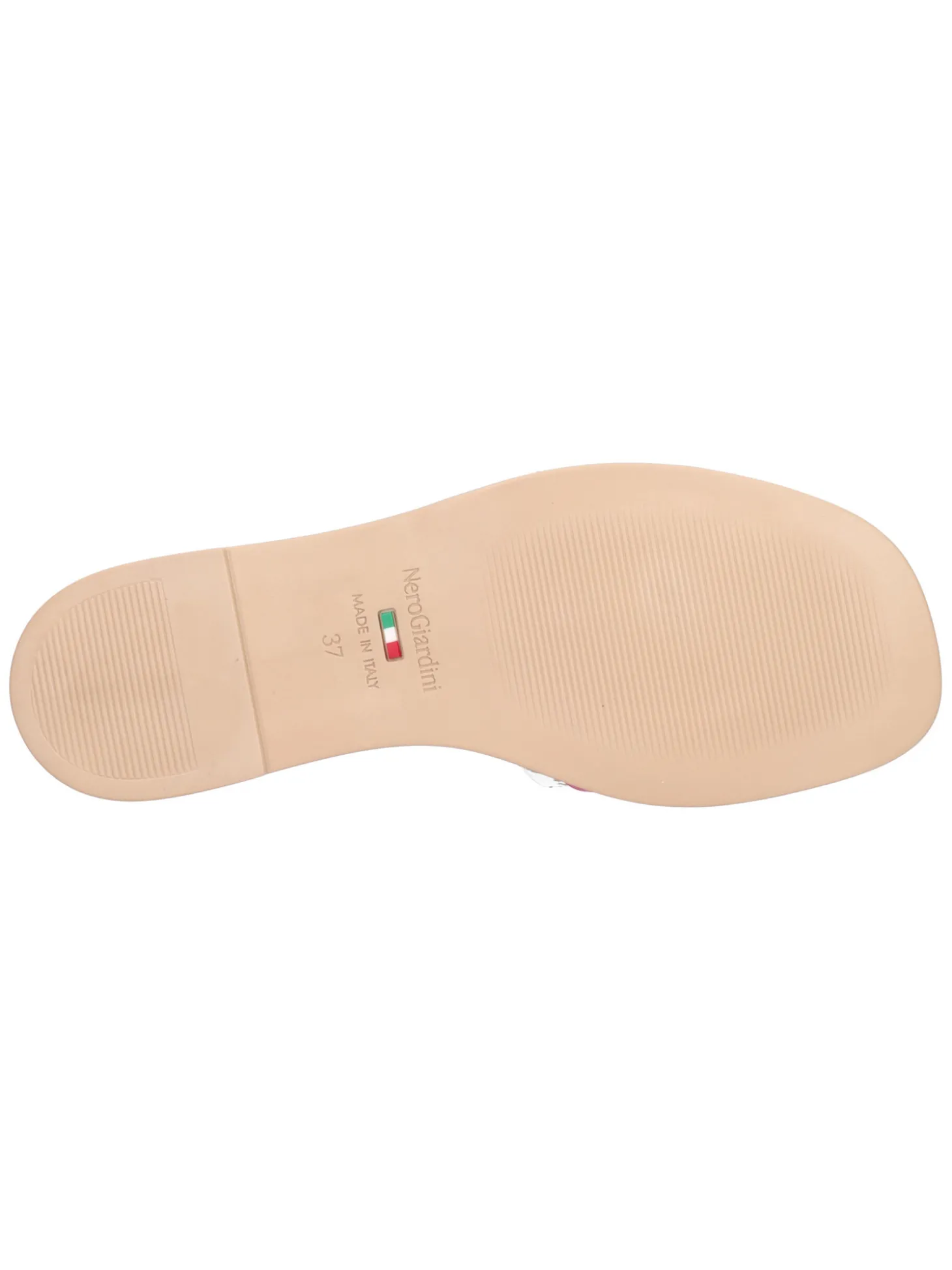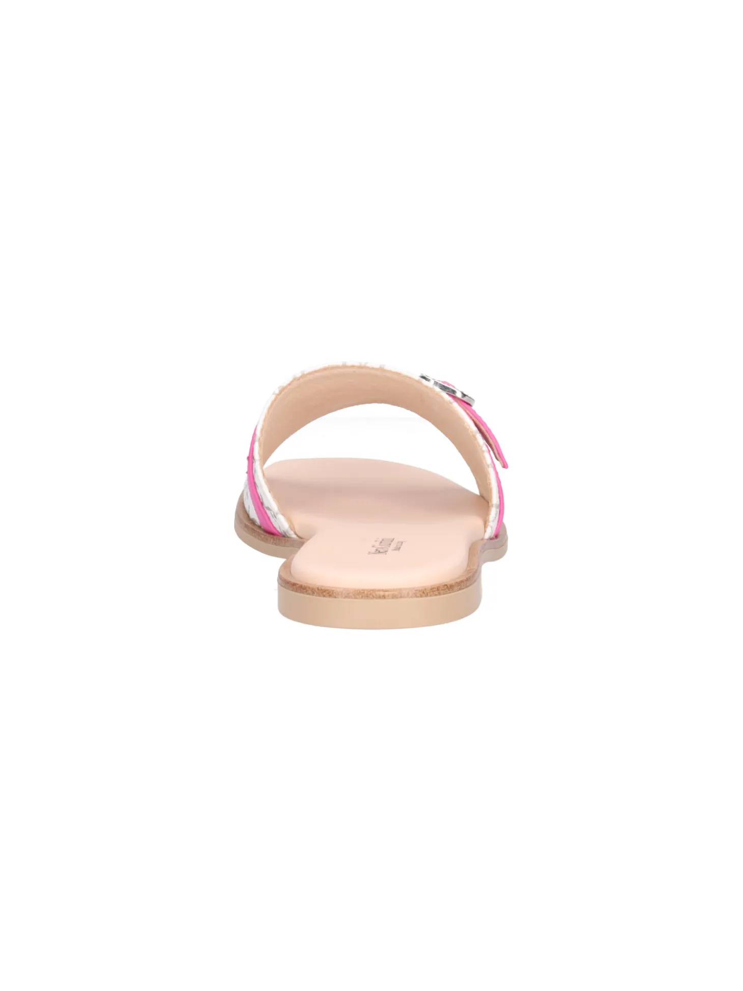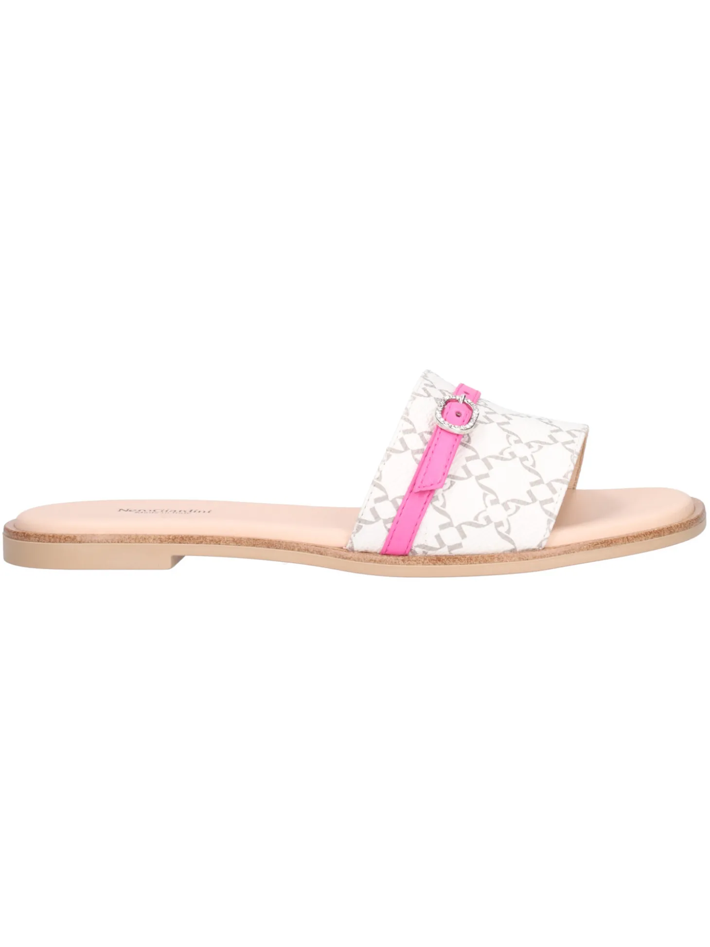 Sandalo Nero Giardini da donna in ecopelle logata bianca con dettagli in pelle fucsia fodera e sottopiede in pelle e fondo in gomma.