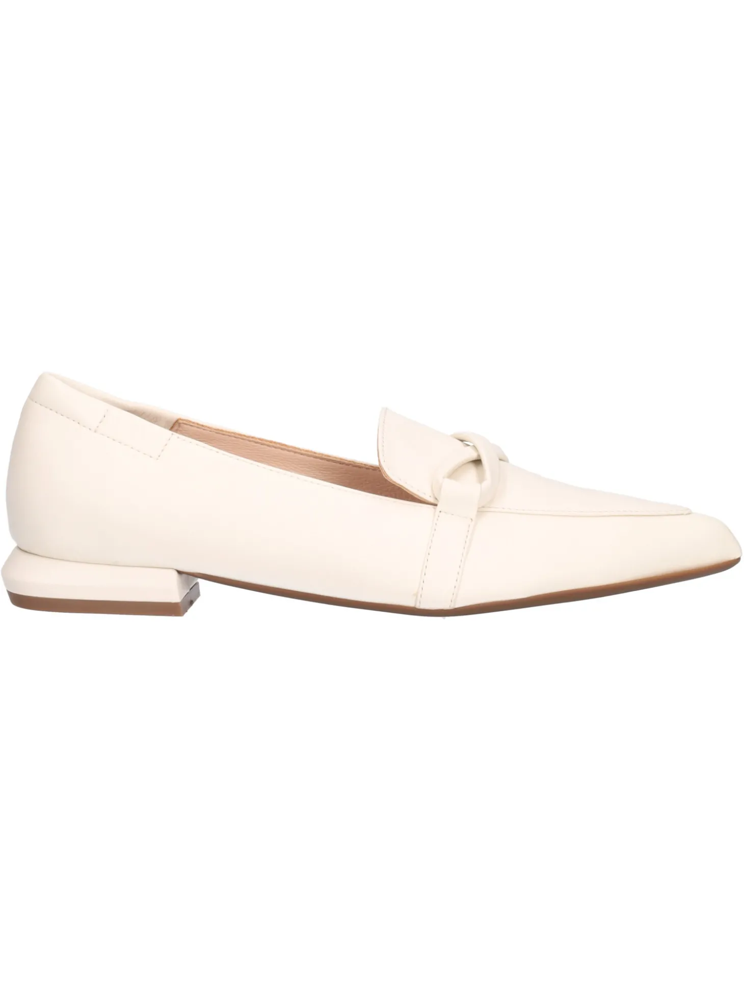 Mocassino a punta Epochè Xi da donna in pelle panna con fodera e sottopiede sempre in pelle con fondo in gomma e tacco di 2cm.