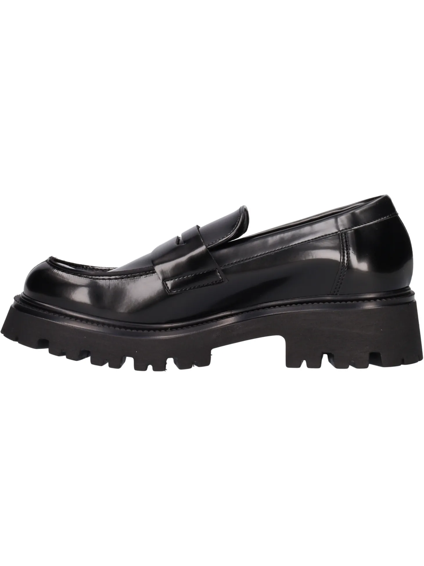 Mocassino boston Liviana da donna in ecopelle semilucida nera con morsetto, fodera in tessuto, sottopiede in vera pelle e fondo in gomma antiscivolo di 4cm.