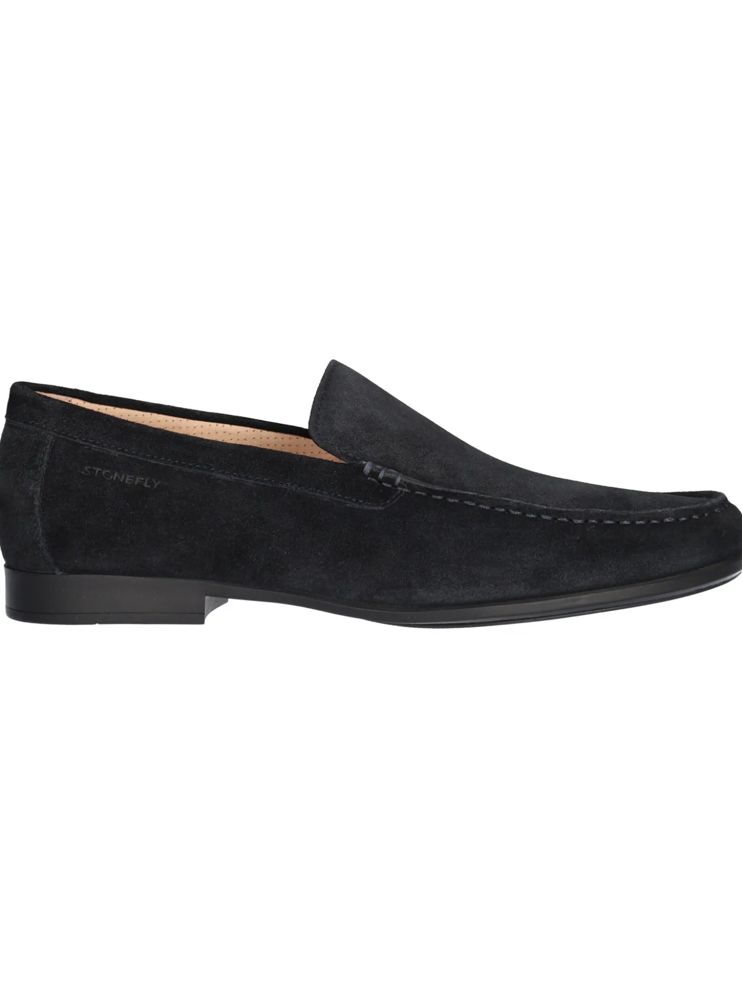 Mocassino Stonefly da uomo in pelle scamosciata blu, con fodera e sottopiede in pelle e fondo in gomma.