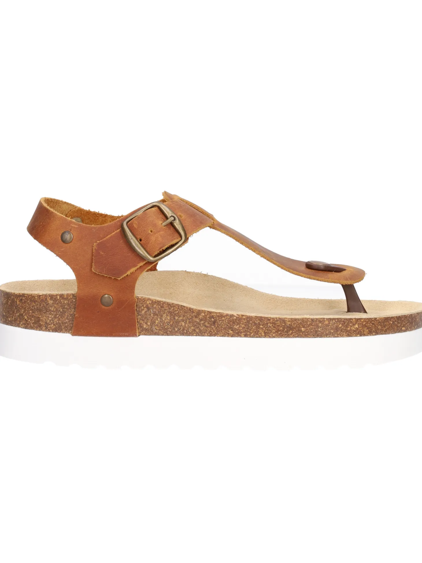 Sandalo infradito Lumberjack Sofia da donna in pelle ingrassata marrone con sottopiede in vera pelle e fondo in gomma antiscivolo.