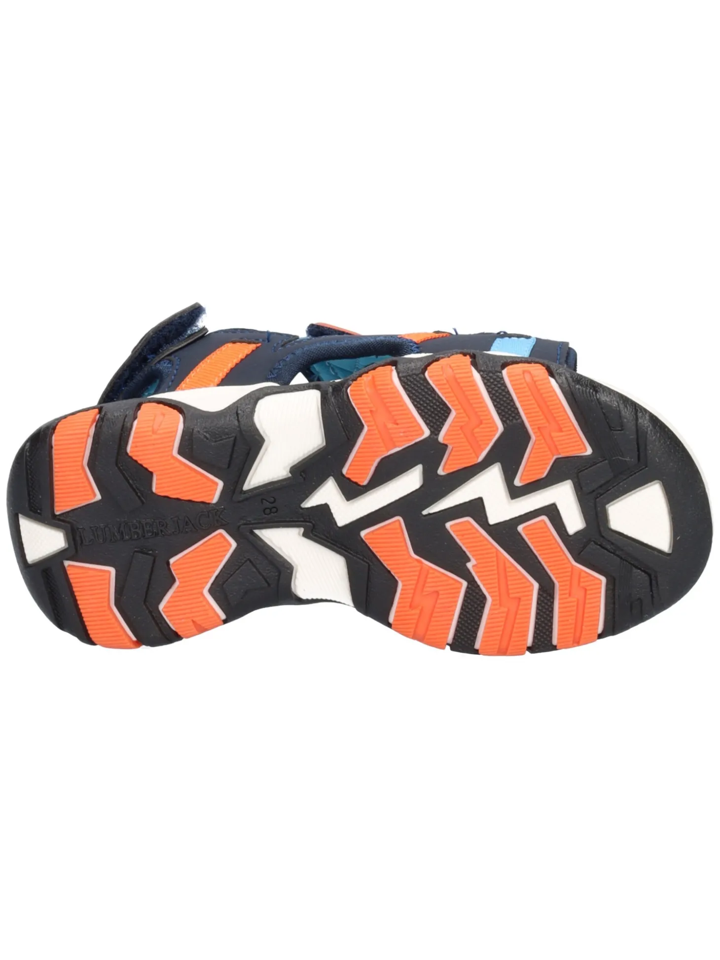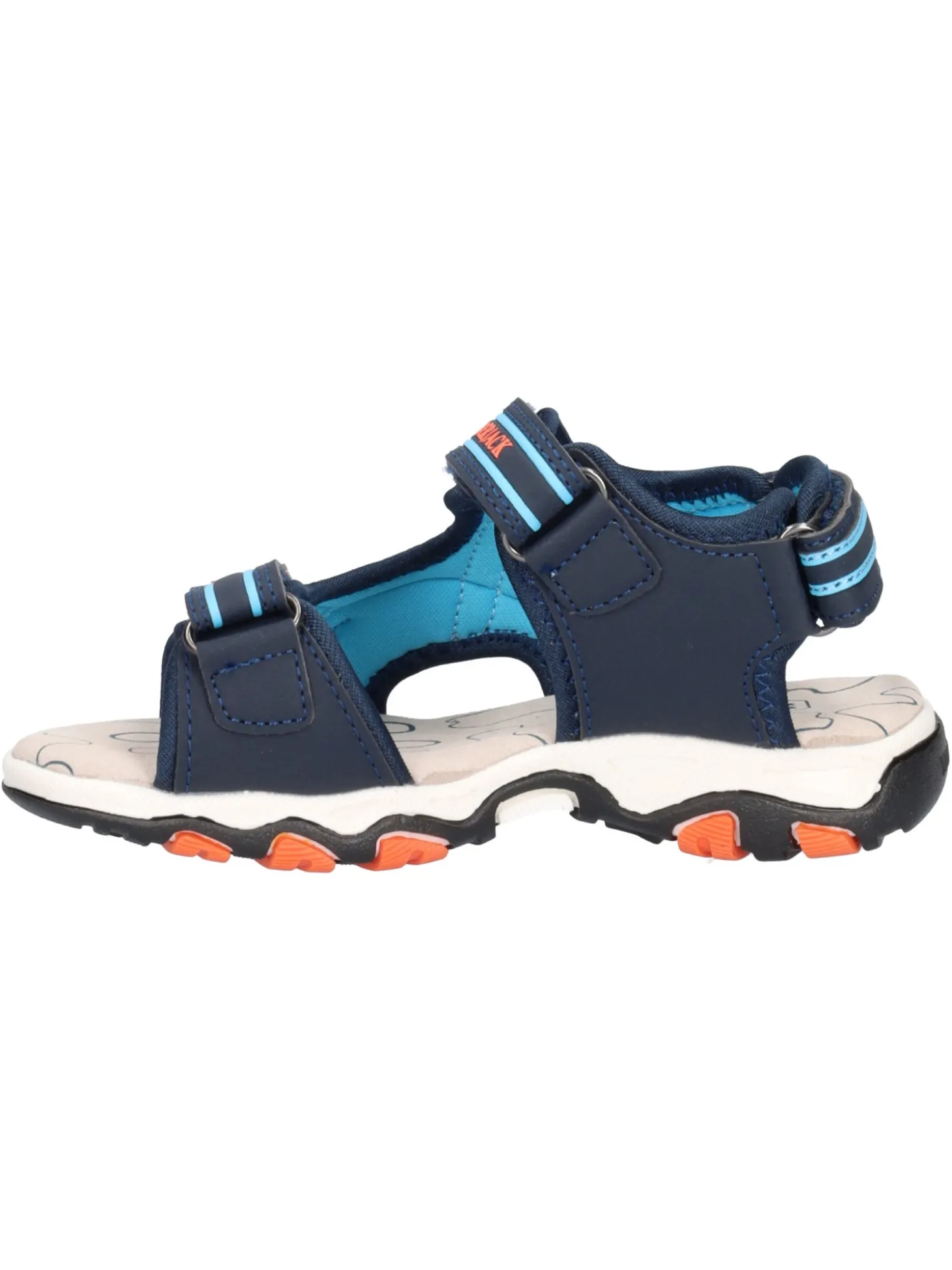 Sandalo Lumberjack Levi da bambino in ecopelle blu con dettagli intessuto e stretch regolabili fodera in tessuto, sottopiede in vera pelle e fondo in gomma antiscivolo.