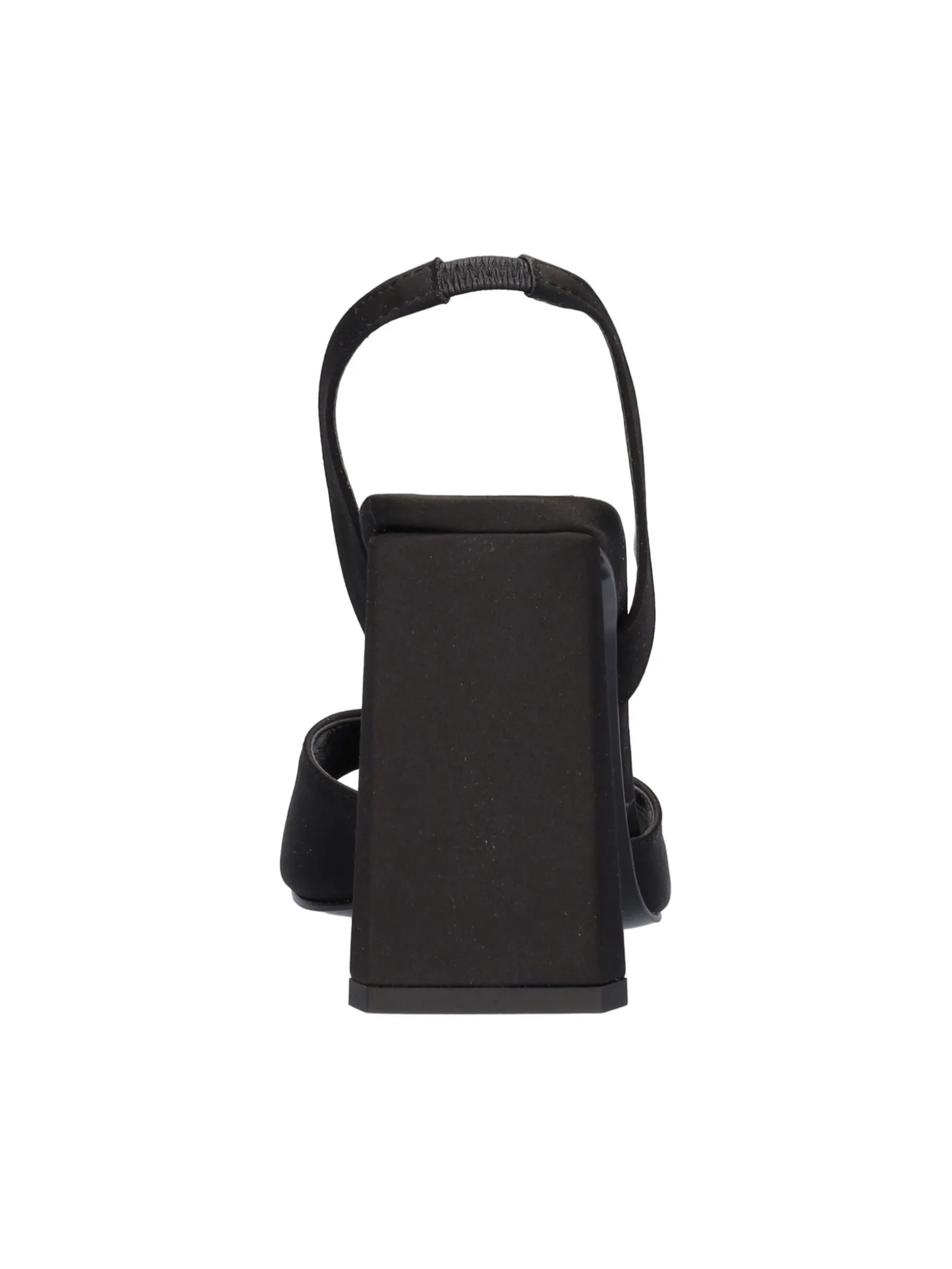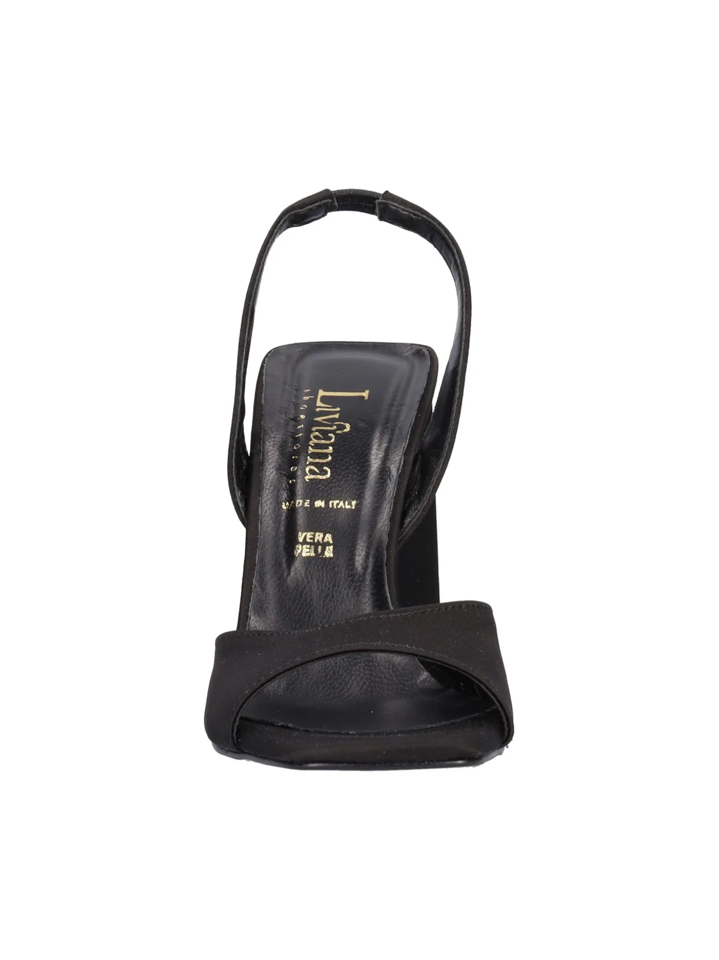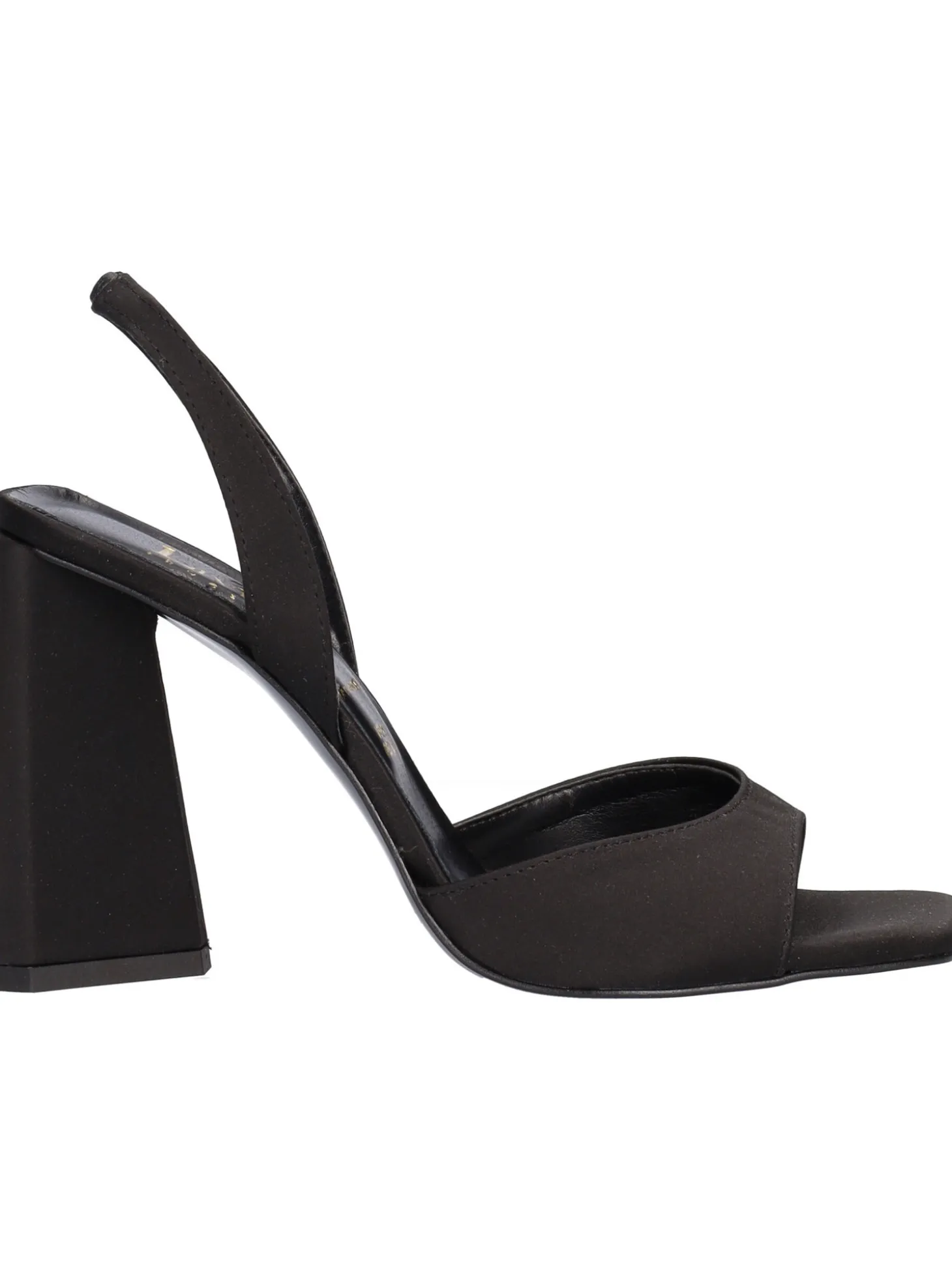 Sandalo Liviana da donna in raso nero con punta quadrata e cinturino elastico sottopiede in pelle, fondo in gomma e tacco di 10cm.