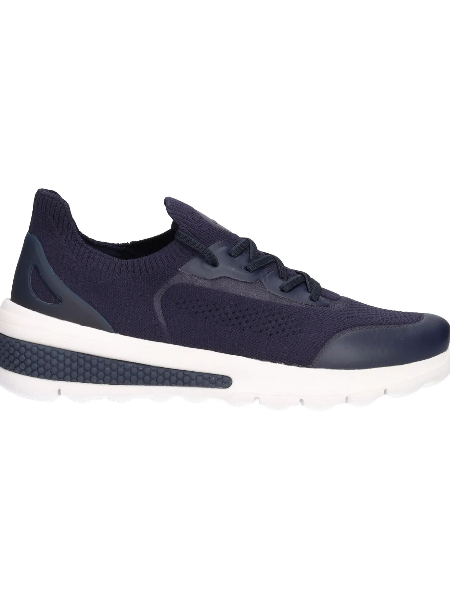 Sneaker Geox Spherica da donna in tessuto blu con sottopiede estraibile e fondo in gomma con micro bolle d’aria che ammortizzano ogni passo.