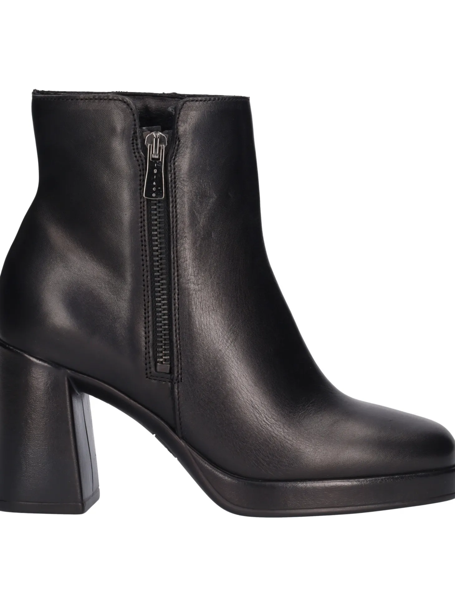 Tronchetto Igi&Co da donna in pelle nera con punta quadrata e zip laterale fodera imbottita in tessuto, sottopiede in pelle e fondo in gomma con tacco di 8,5cm.